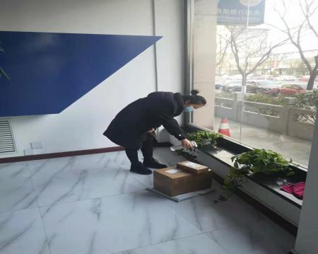有序的排隊(duì)測(cè)量體溫、登記 | ![]() 快遞放置區(qū)、對(duì)快遞進(jìn)行消毒 | ![]() 發(fā)放防疫物資、做好防控保障 |